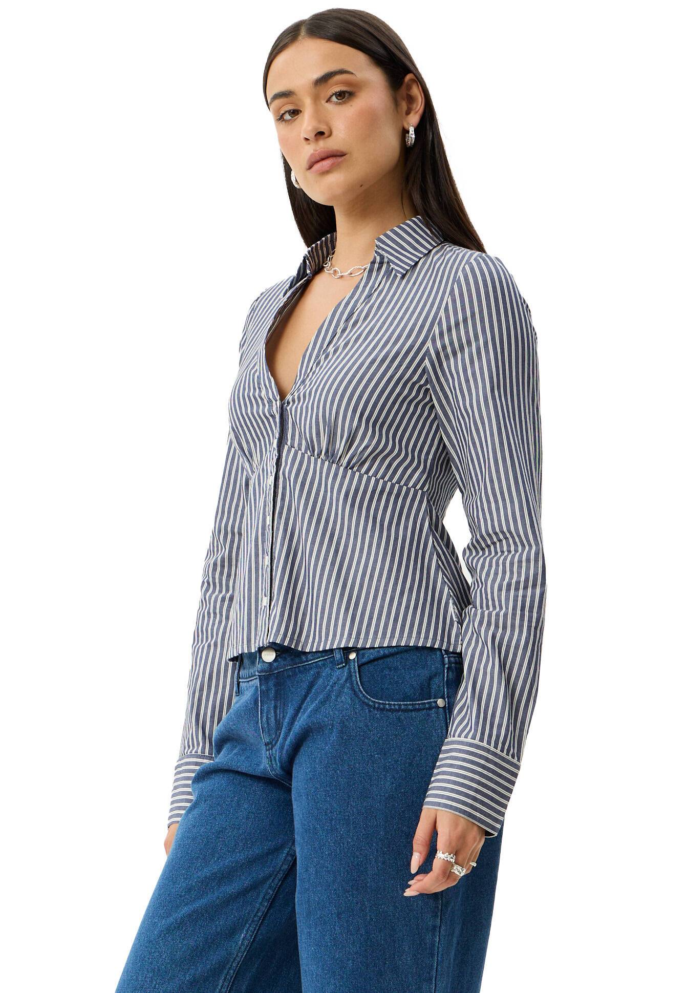 V-neck button front