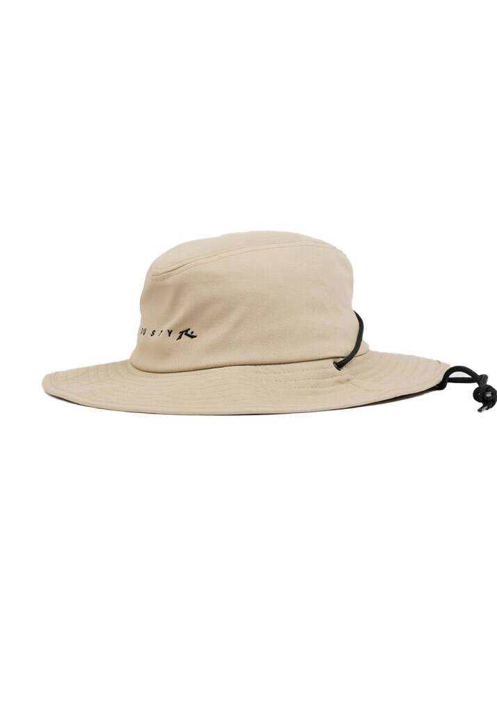 Wide Brim Hat With Rusty Embroidery And Adjustable Drawcord.