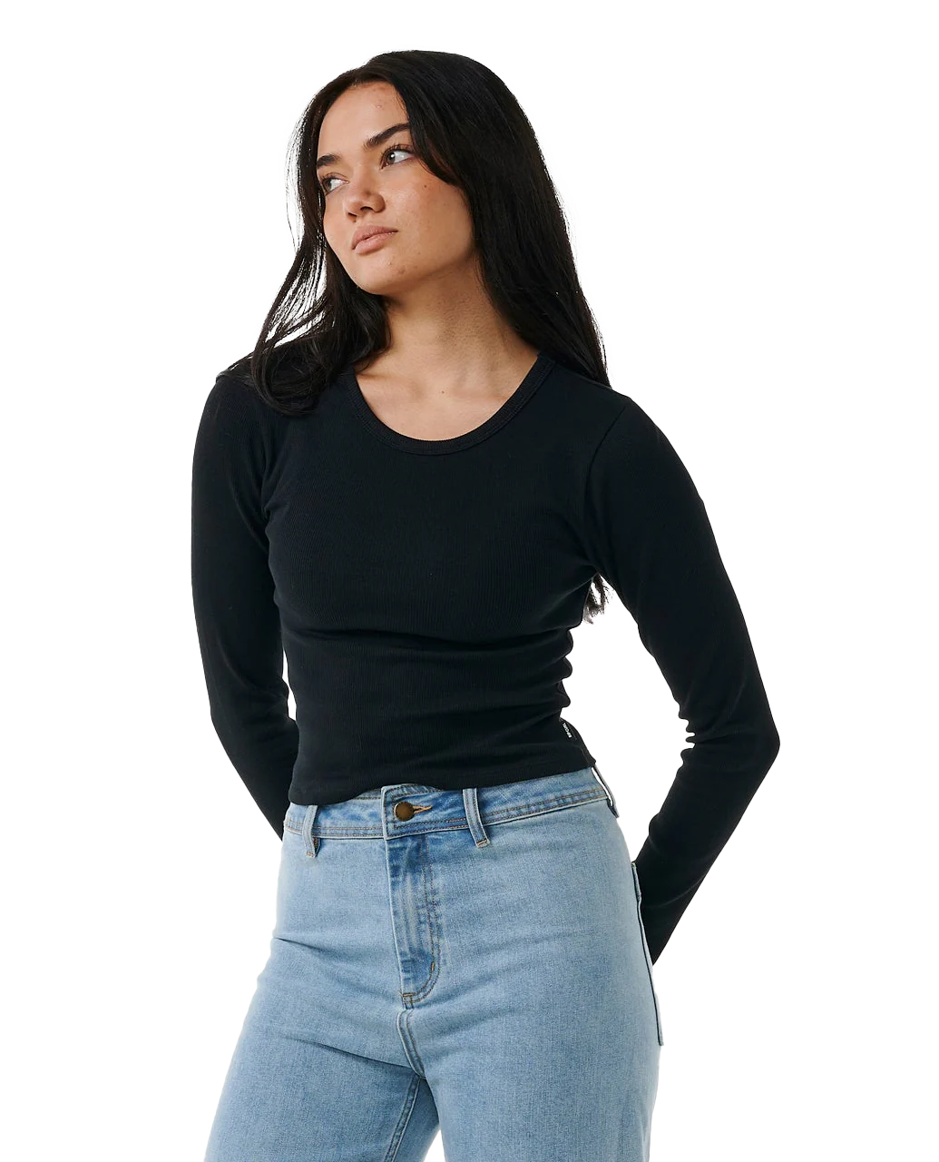 Elevate your basics with the Classic Ribbed Long Sleeve Tee.