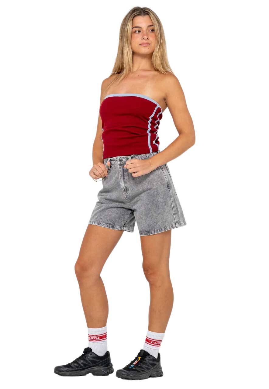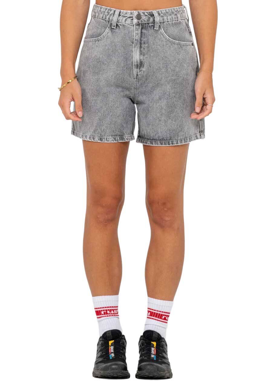 High waisted denim short Relaxed fit Fixed waist Denim 15" Outseam 100% Cotton denim
