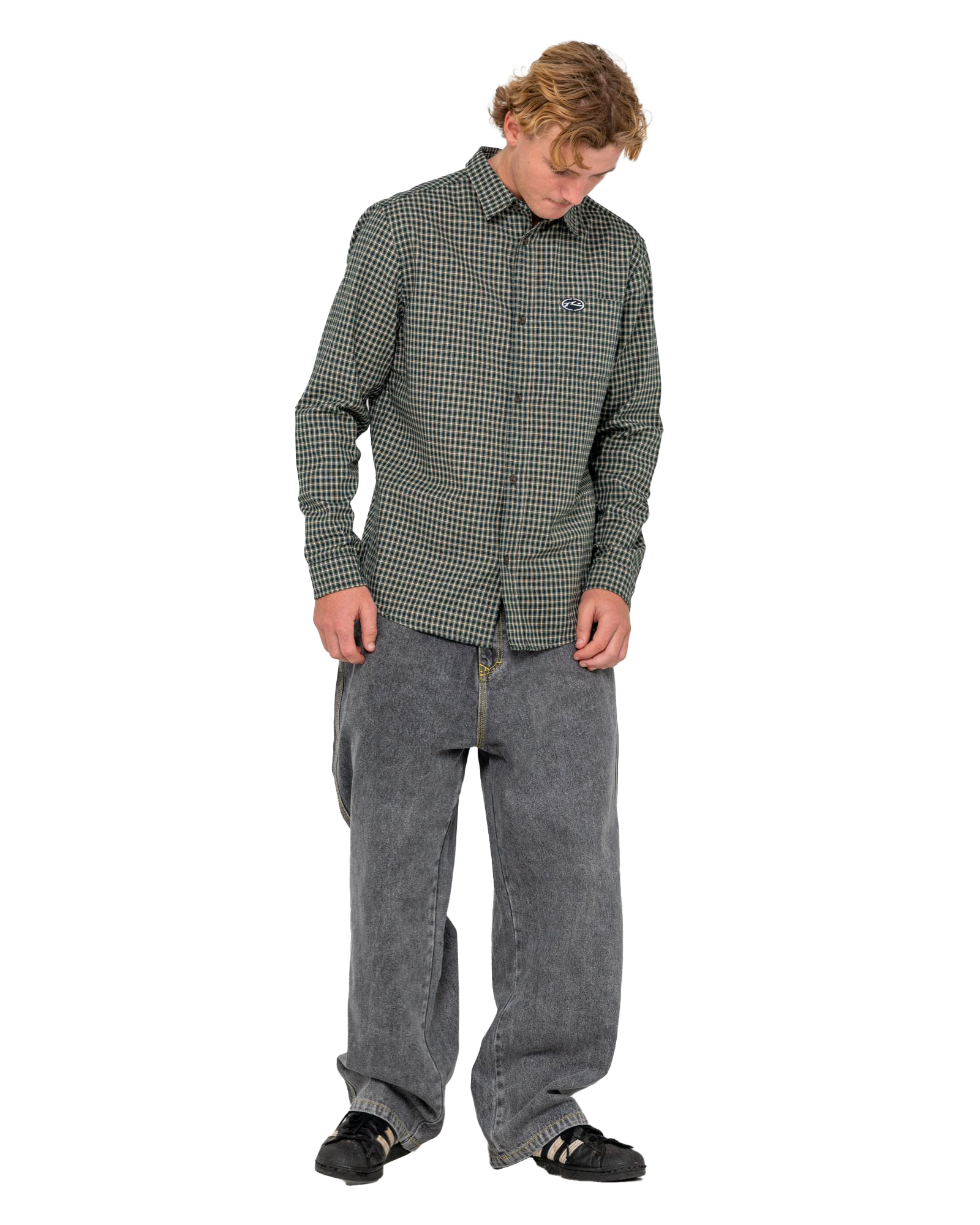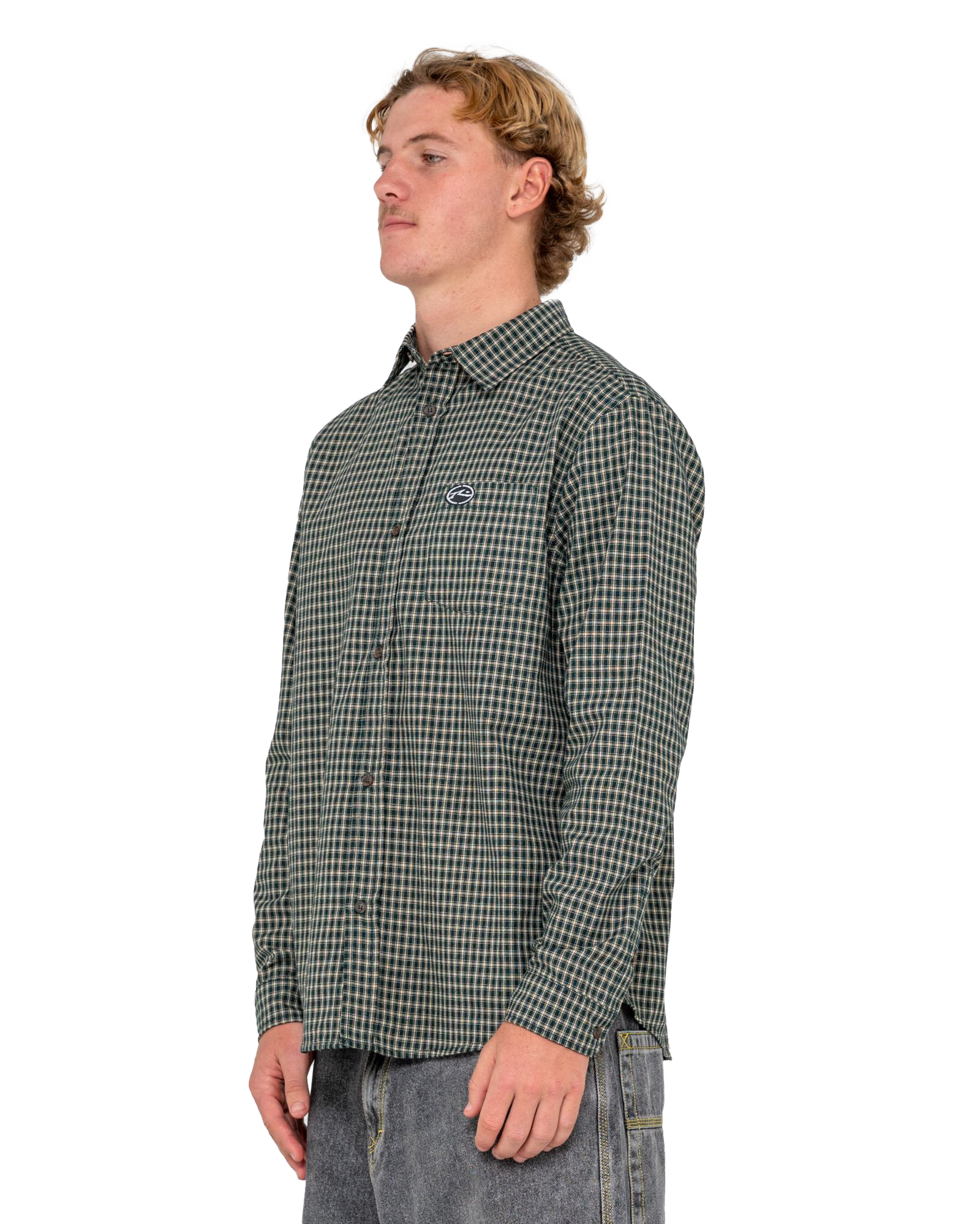 Relaxed fit long sleeve shirt Chest pocket with embroideryPlaid check100% Cotton Plaid