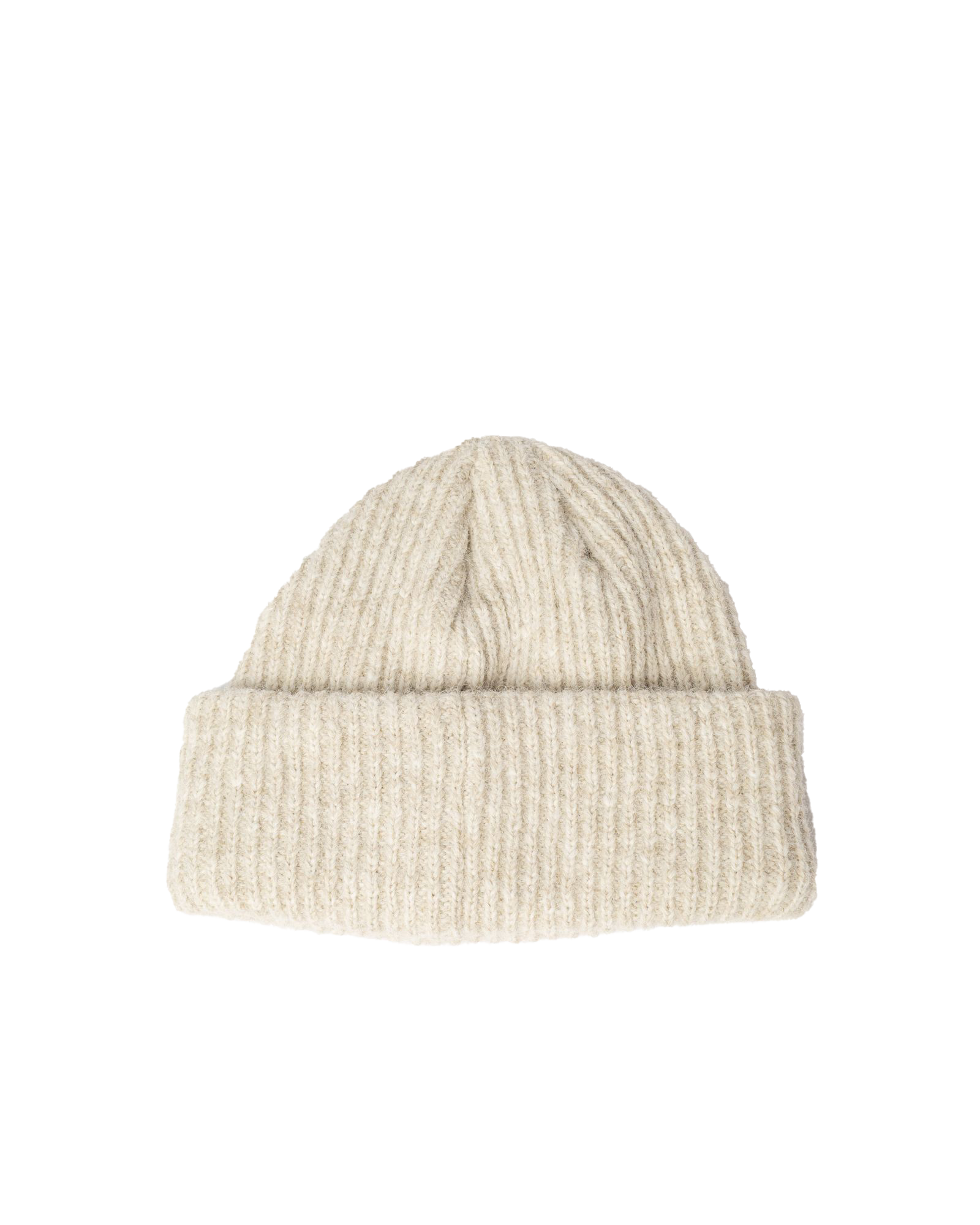 Short Fit Beanie In Textured Wool Blend Recycled Yarn With Front Embroidery.