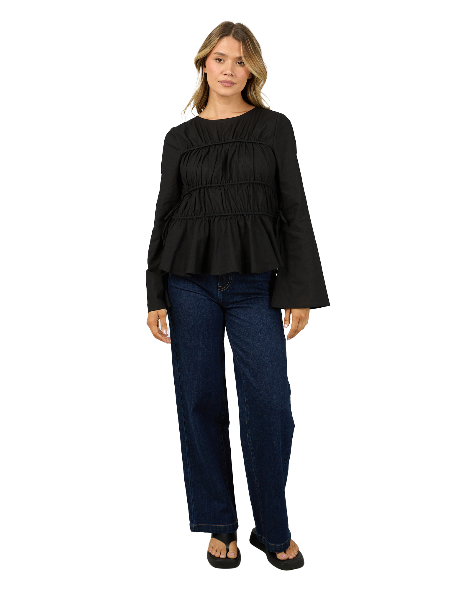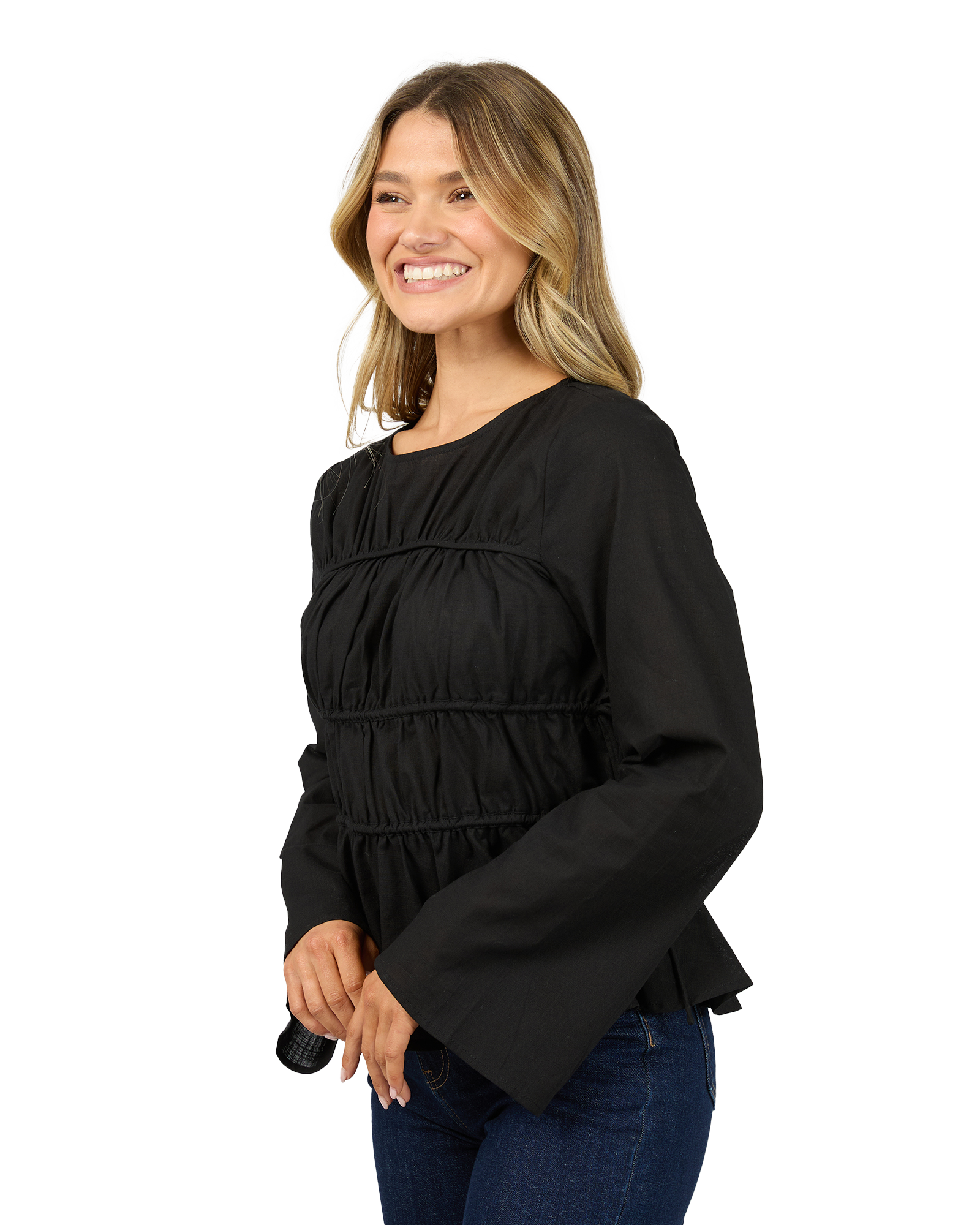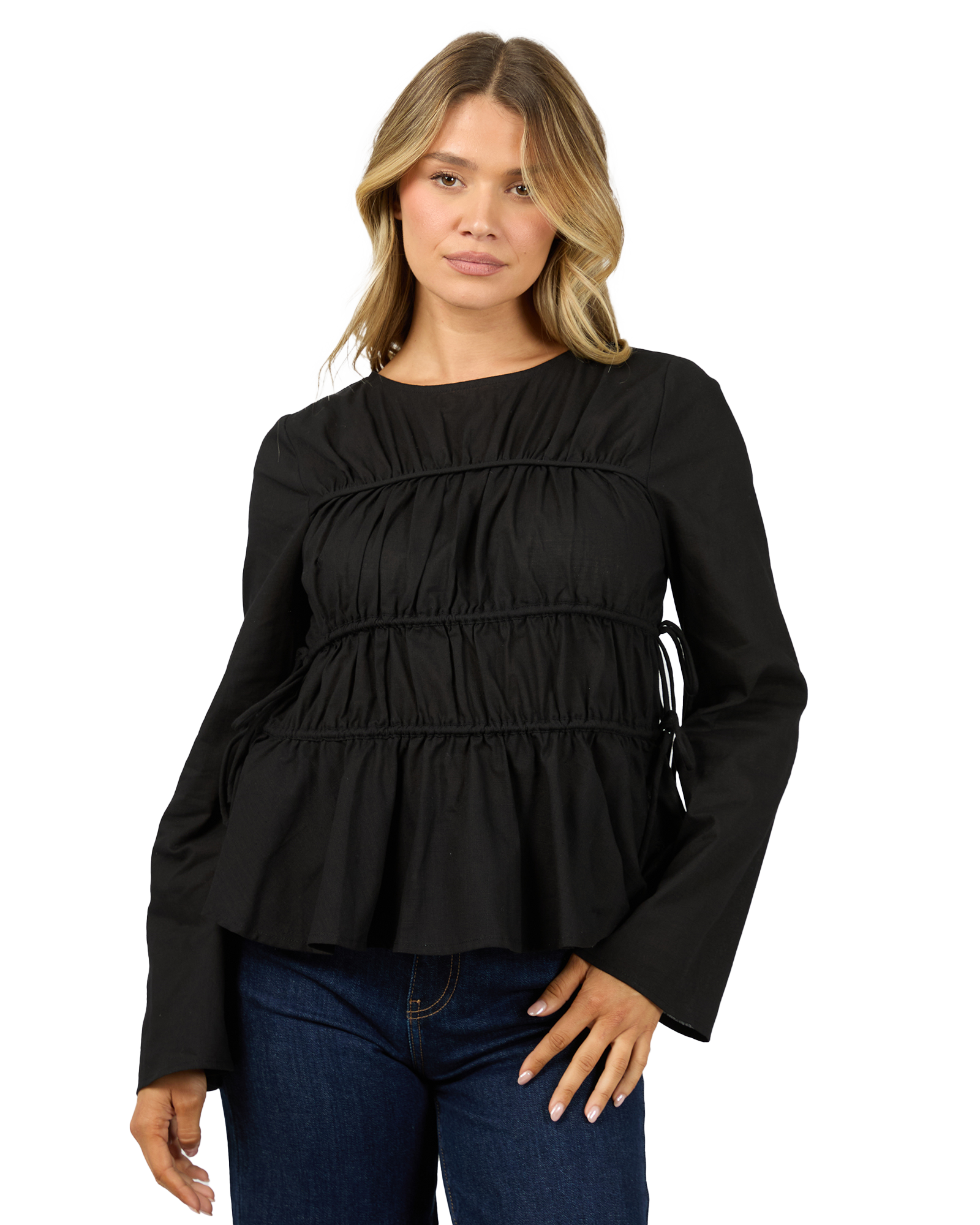 The Lou Lou Tie Top made from a soft breathable cotton fabrication features a stylish tie closure and ruched fabric that flatters your silhouette.