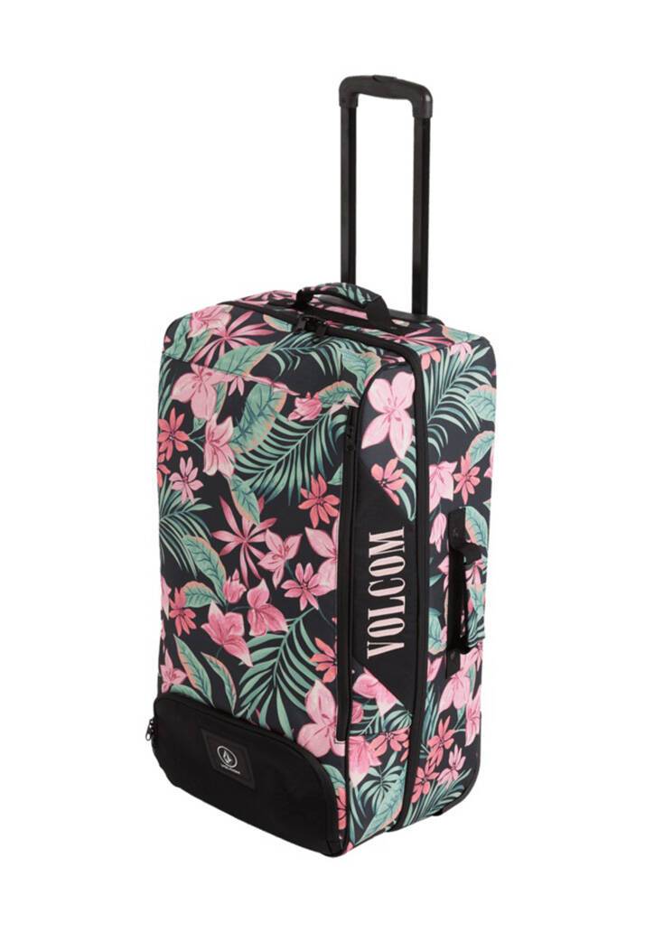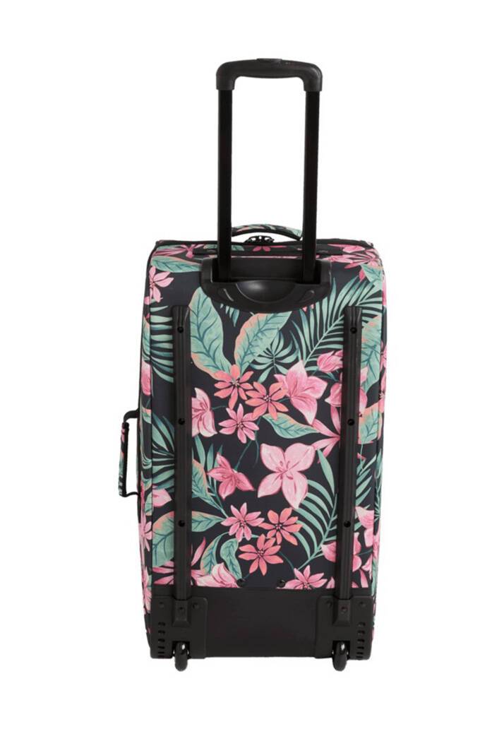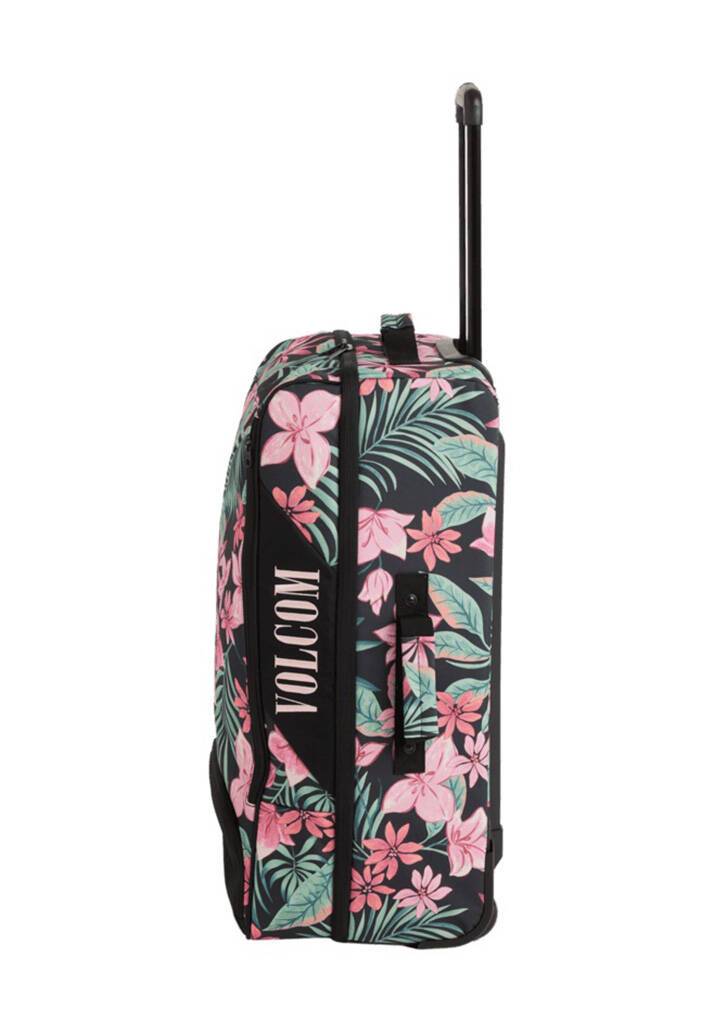 Wheelie luggage with internal mesh compartment, external wet compartment at bottom and front zip pocket