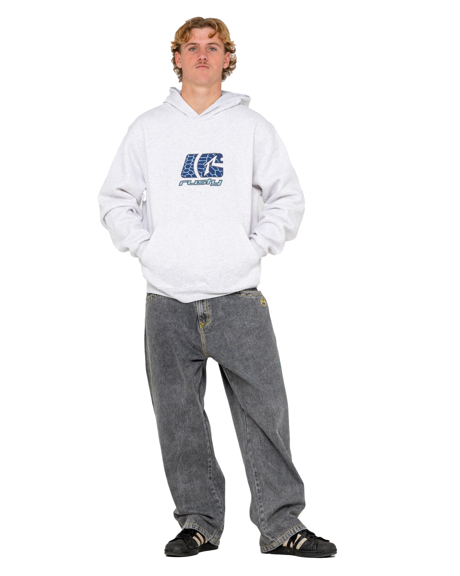 Relaxed R2K fit hooded fleece with Rusty high density print.