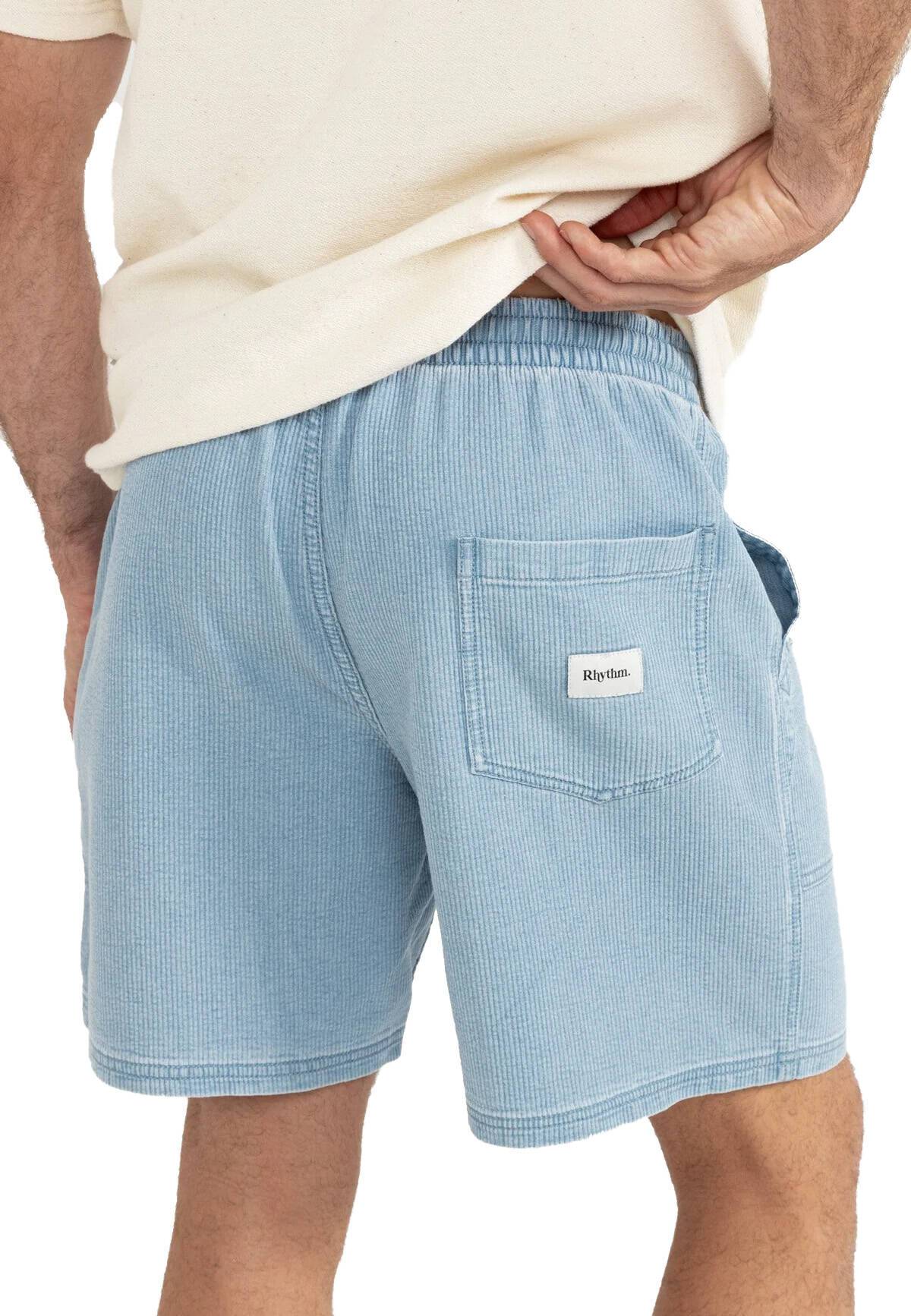 Textured Wale Denim 18 Inch Out SeamElastic Waistband Poly Drawstring Front Patch Hand Pockets Back Patch PocketRhythm Trims90% Cotton 10% Polyester