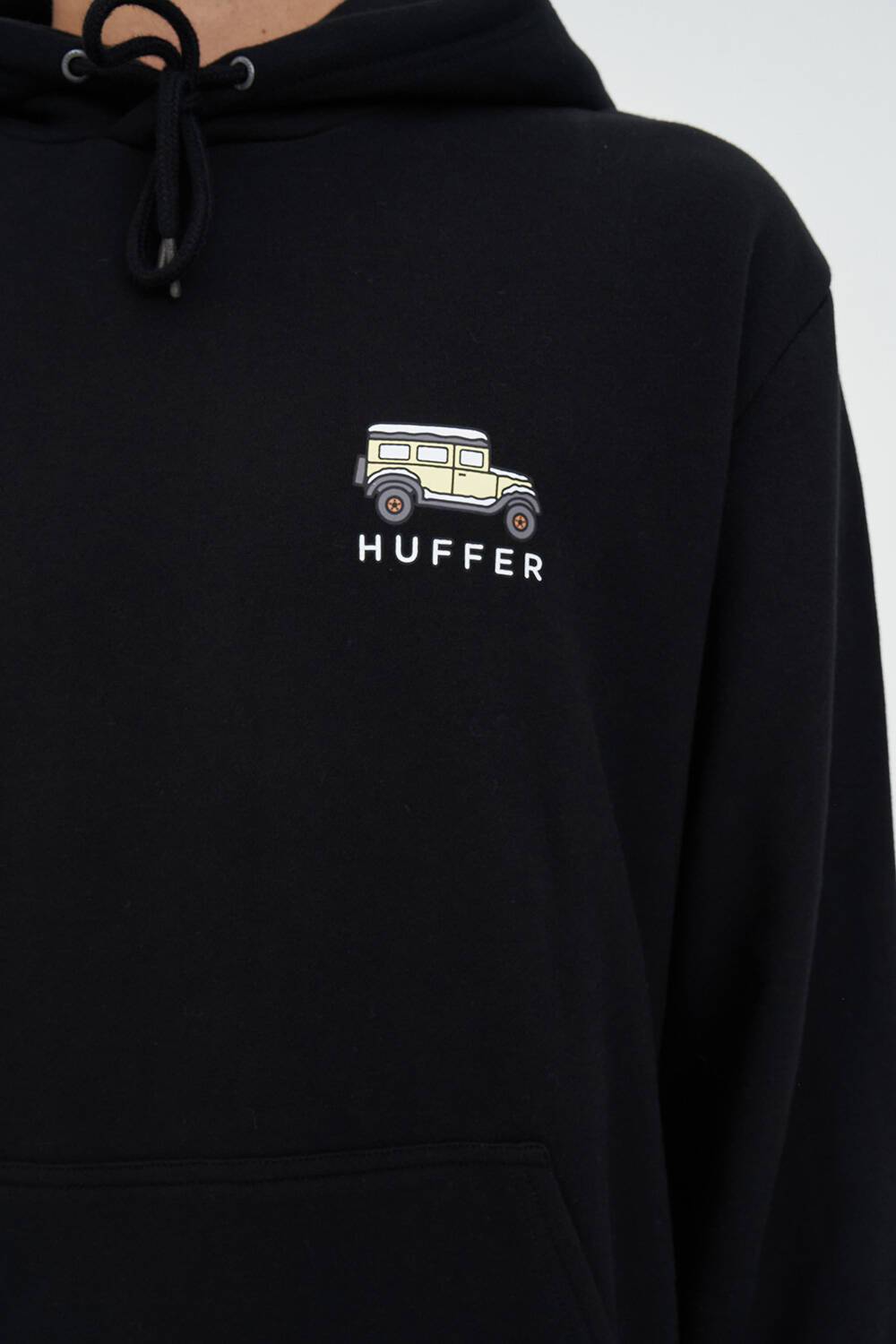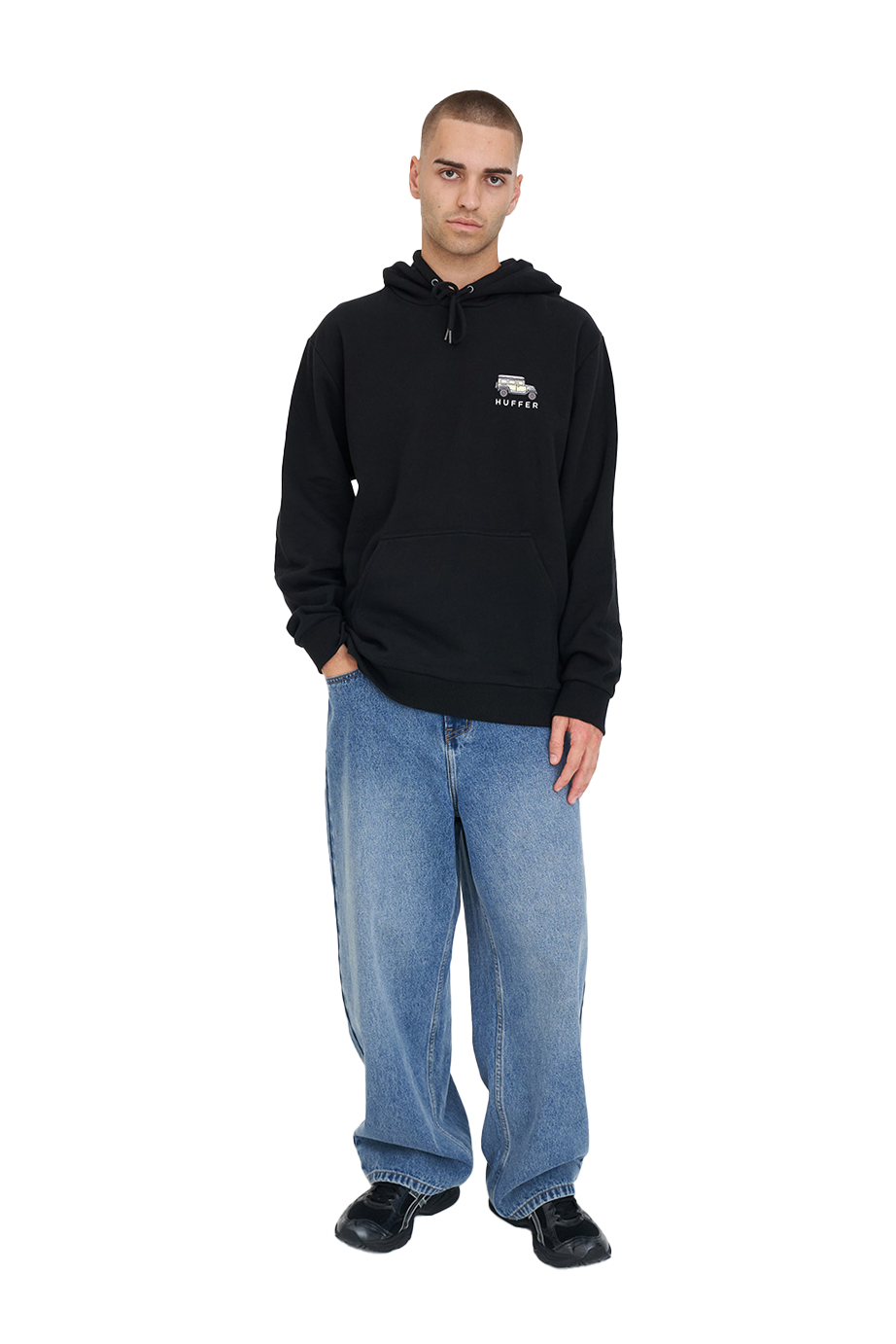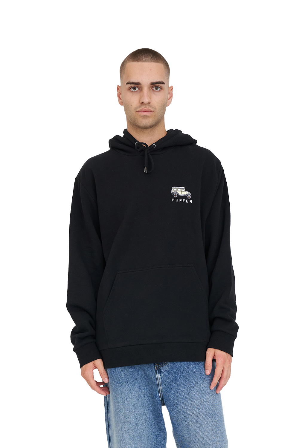 Mid weight brushback fleeceClassic streetwear fitKangaroo pocket Self lined hoodHuffer branded screenprint350gsm100% Cotton