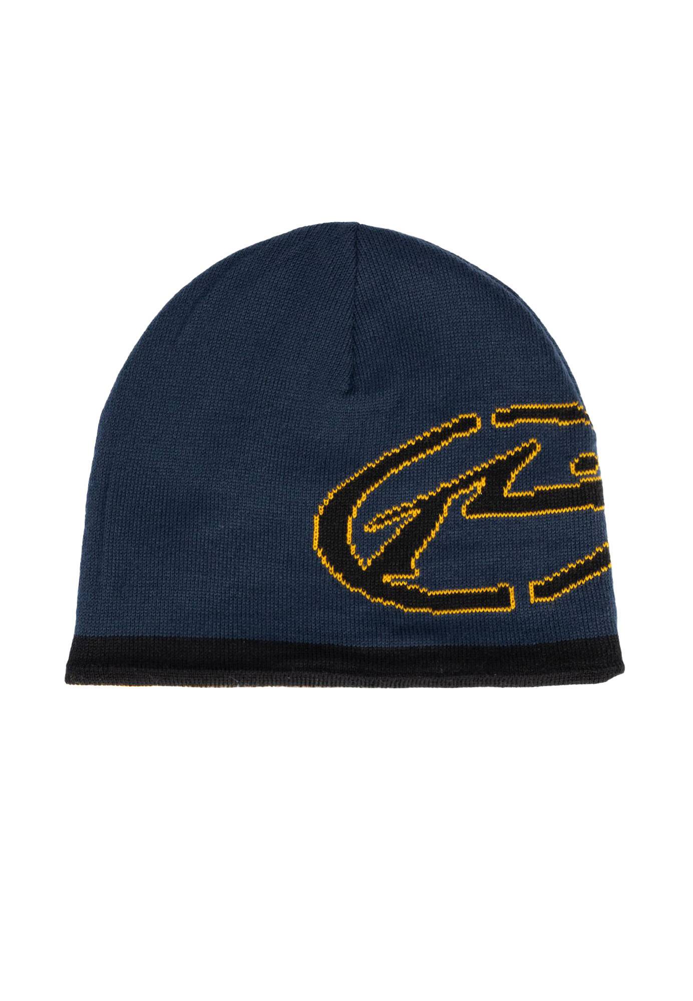 Reversible Cuffless Beanie With Jacquard Logo And Embroidery. 100% Acrylic Yarn