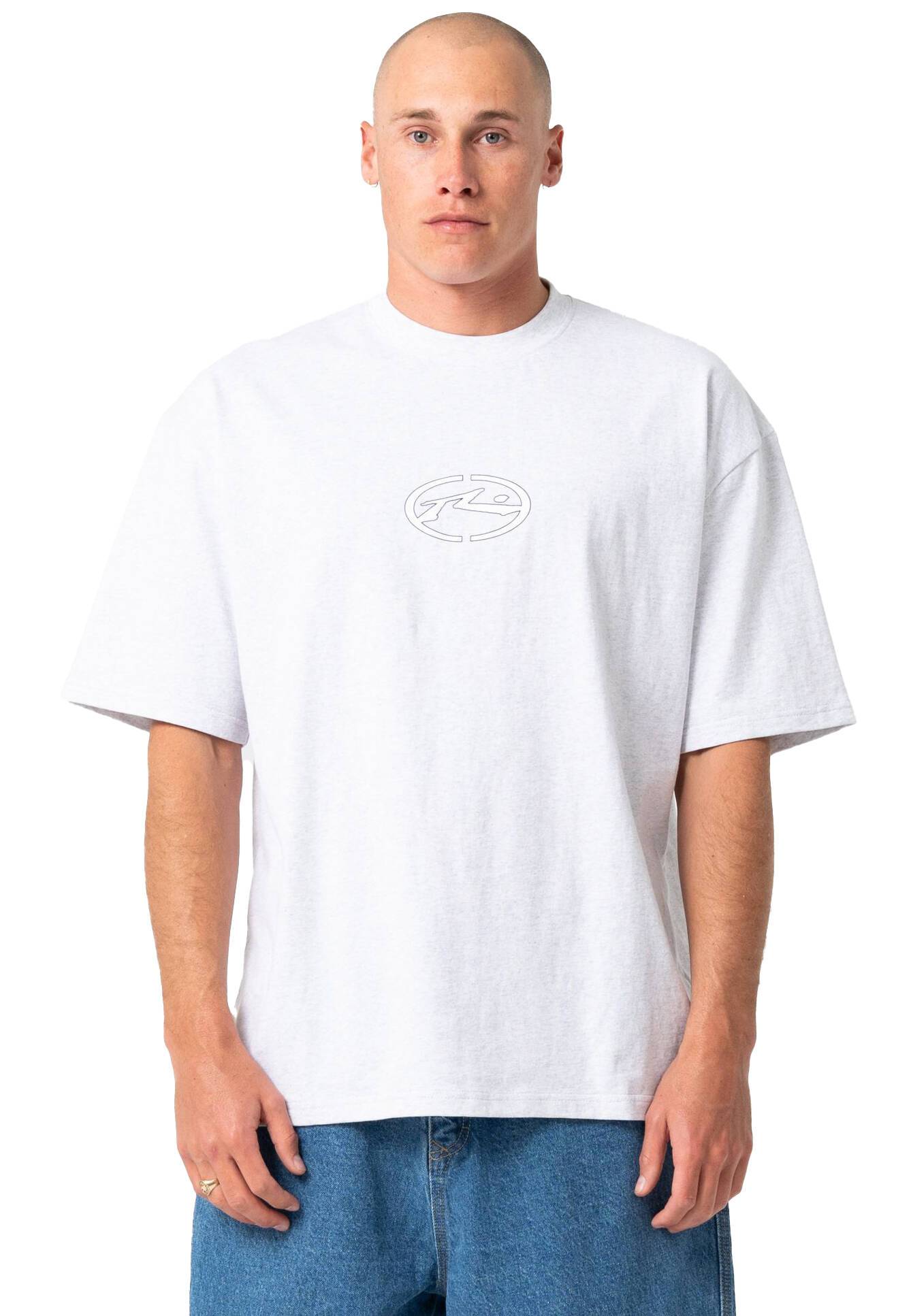Oversized R2K fit tee with Rusty chest & back print.