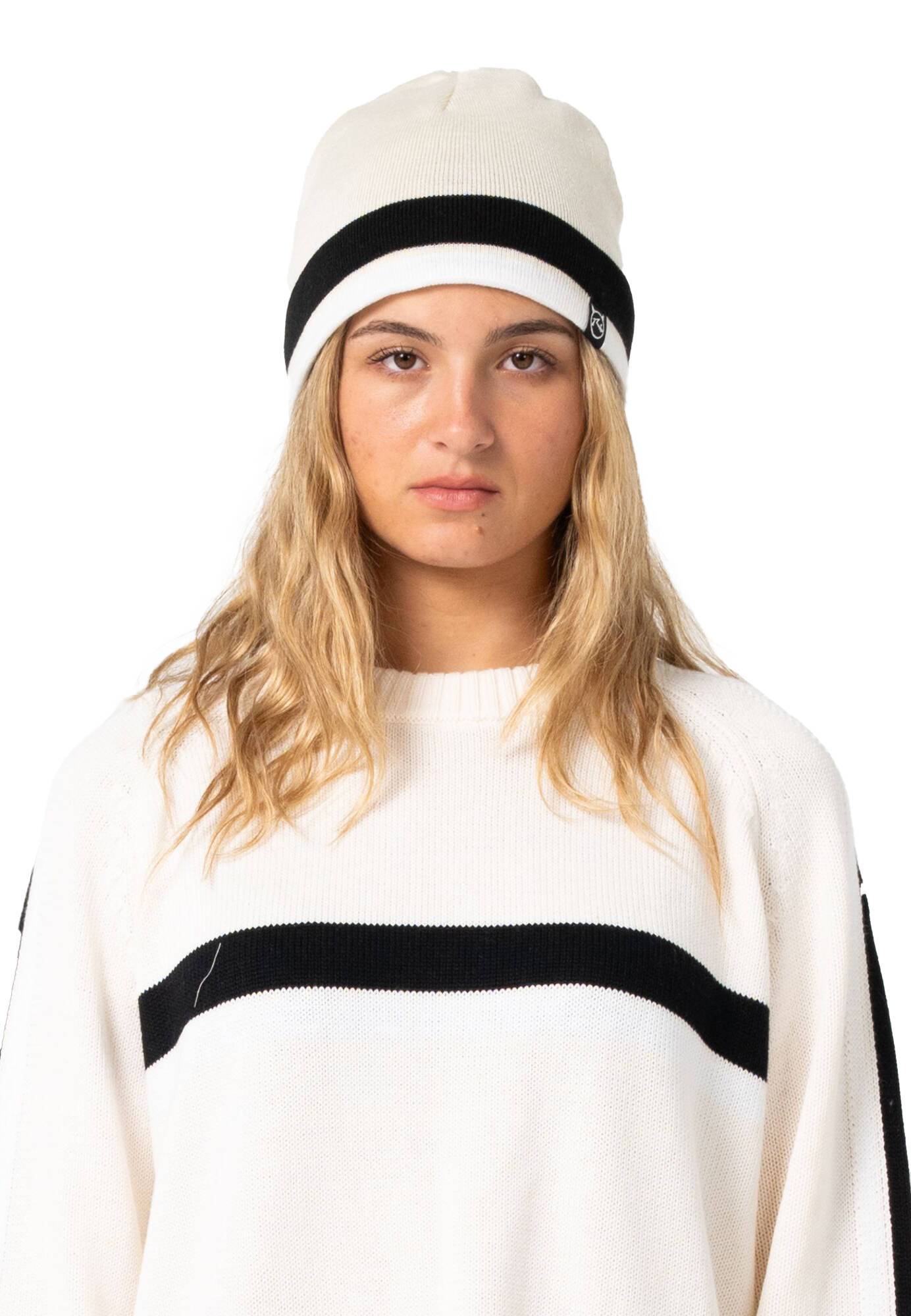 Reversible Cuffless Beanie With Jacquard Stripe And Rusty Trim.